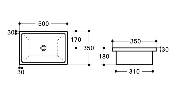 Overall Size: 500mm W x 350mm D x 180mm H