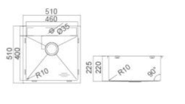 - Overall Size: 510L x 510W x 225D
