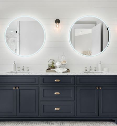 Round light up mirror. The stylish and slick backlit round mirror “Sphere” series flawlessly depicts how congruent contemporary and classic can be. Furthermore, the backlit LEDs emit the light outwards creating a soft ambiance around the mirror, which as a result adds space and depth to the wall. Whilst it is minimal, it above all brings an elegance to contemporary bathrooms and a sleek sophistication to bedrooms.