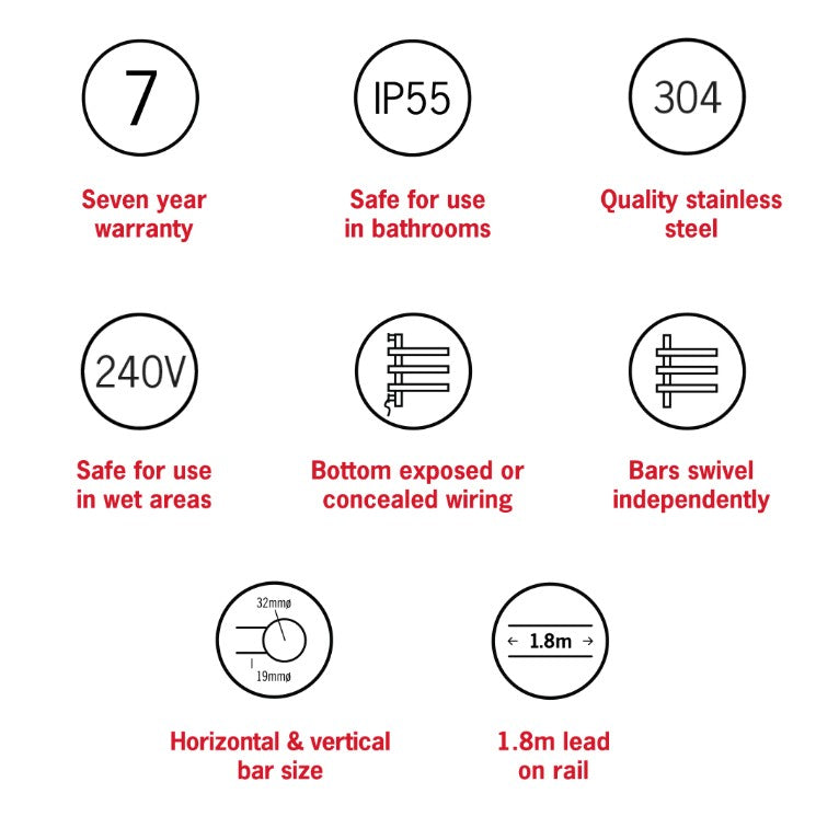 Swivel Heated Towel Rails - 3 Colours
