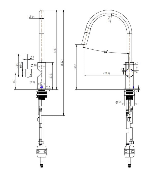Round Mini Pull Out Kitchen Mixer- Brushed Nickel