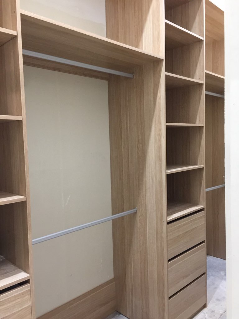 Natural Oak finish walk-in wardrobe