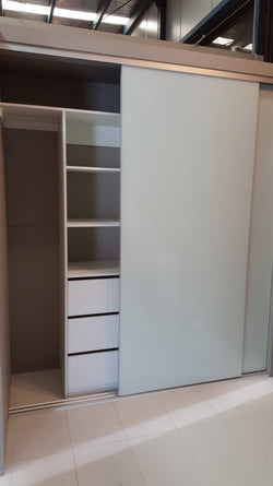 White melamine wardrobe with frameless sliding doors