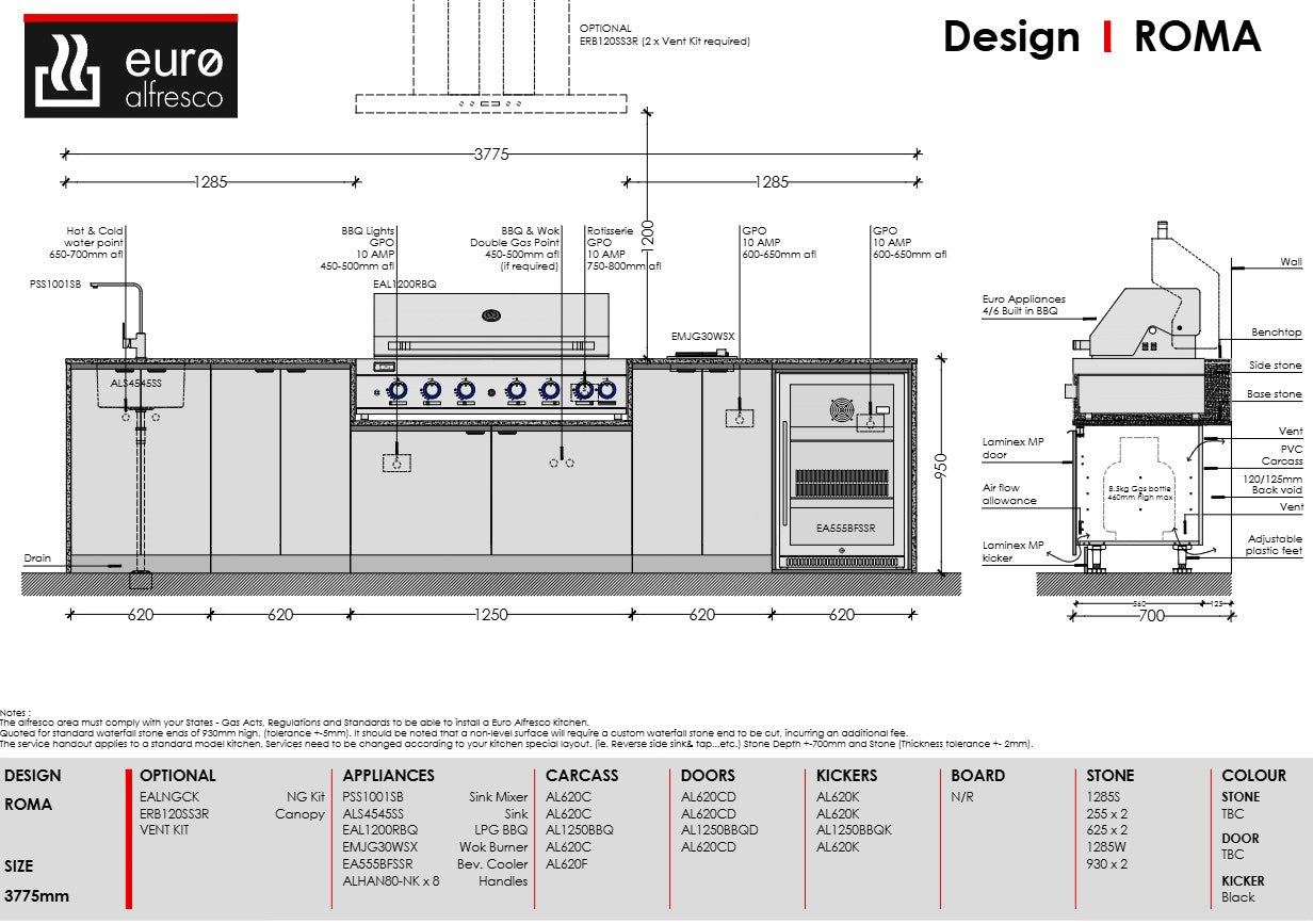- Include 6 Burner Built in BBQ and Hood ( Cover included) with the option of LPG or natural gas