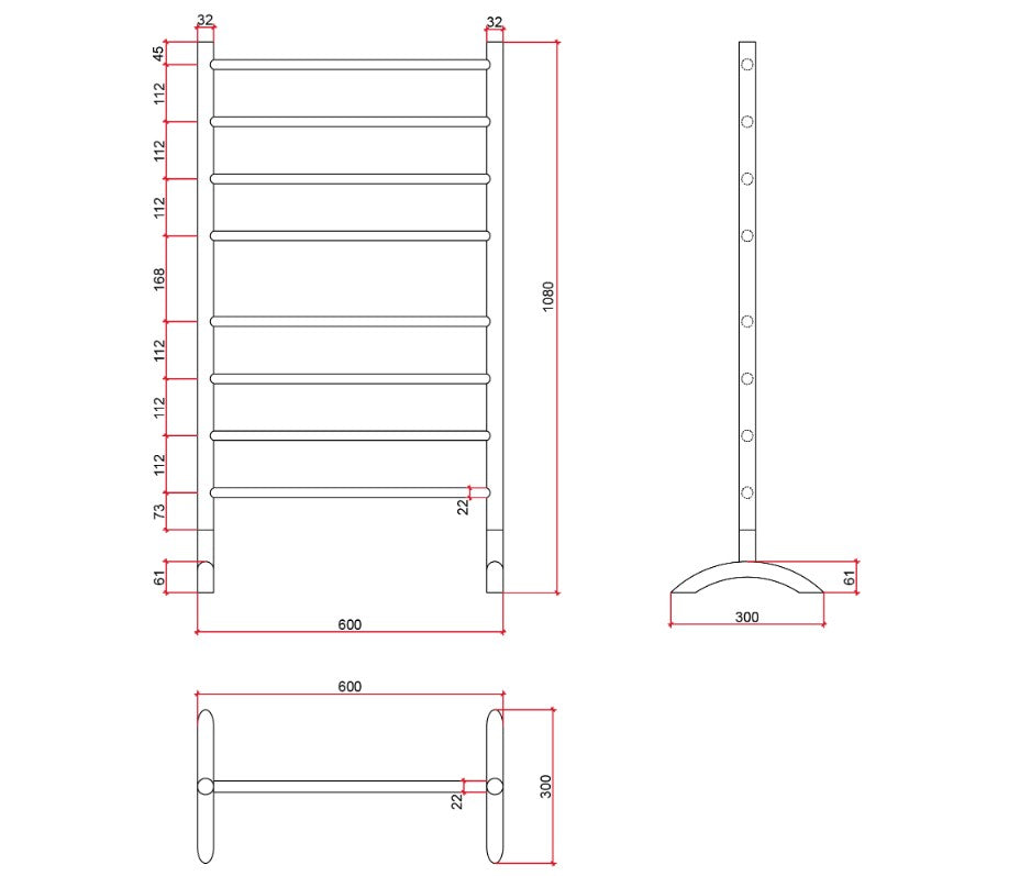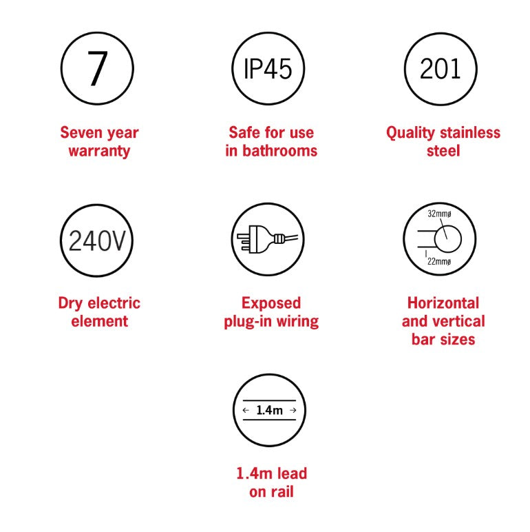 Straight Round Free Standing Heated Towel Rail - 2 Colours